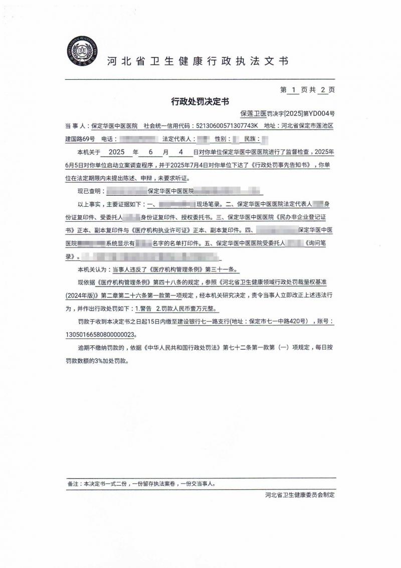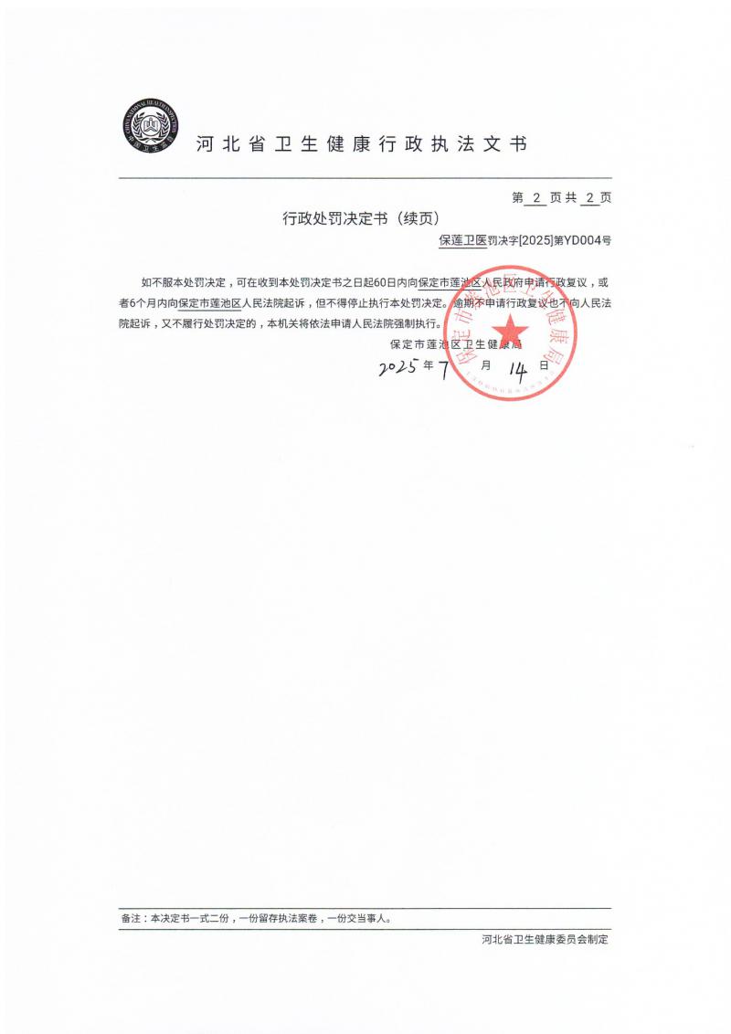 保定市莲池区卫生健康局行政处罚案件公开信息