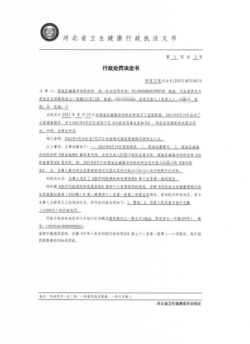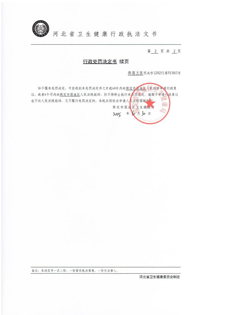 保定市莲池区卫生健康局行政处罚案件公开信息
