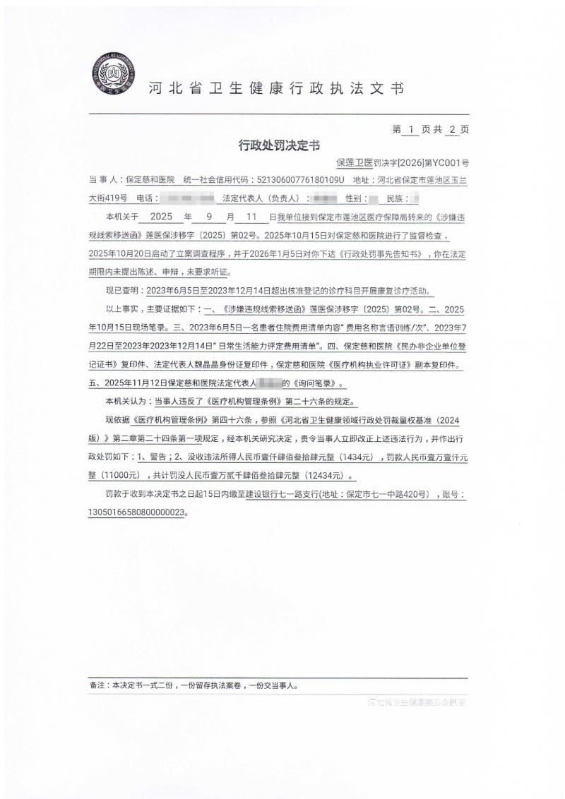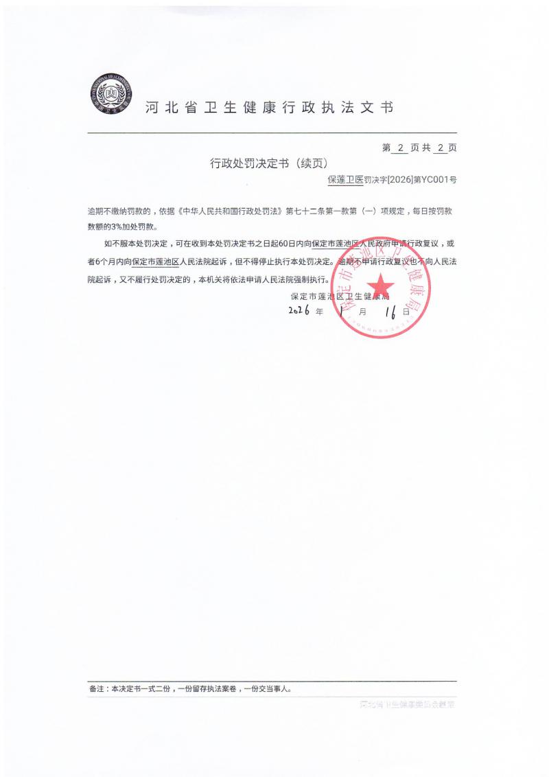 保定市莲池区卫生健康局行政处罚案件公开信息