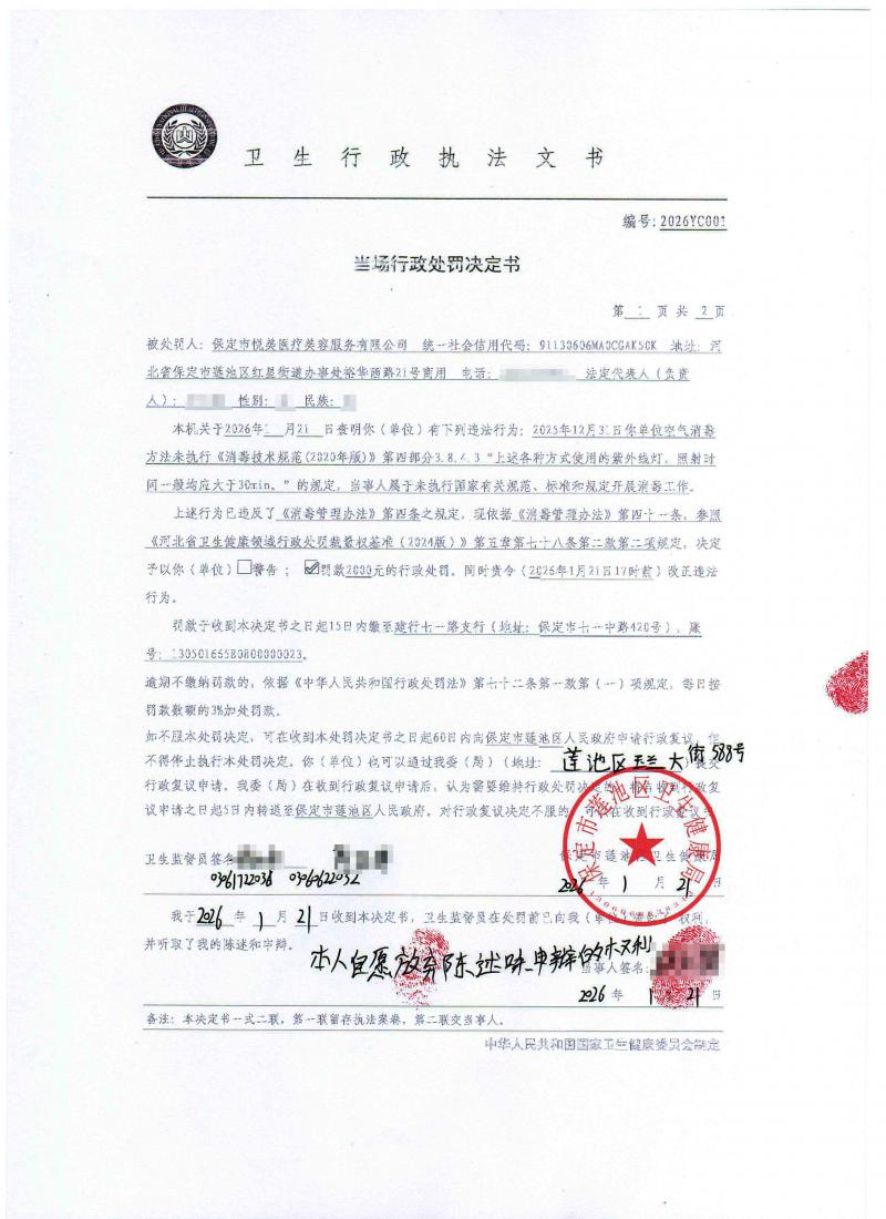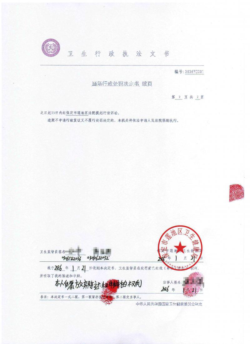 保定市莲池区卫生健康局行政处罚案件公开信息