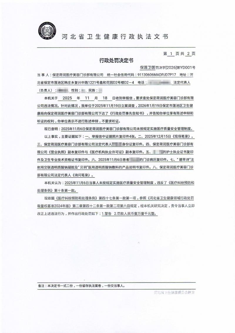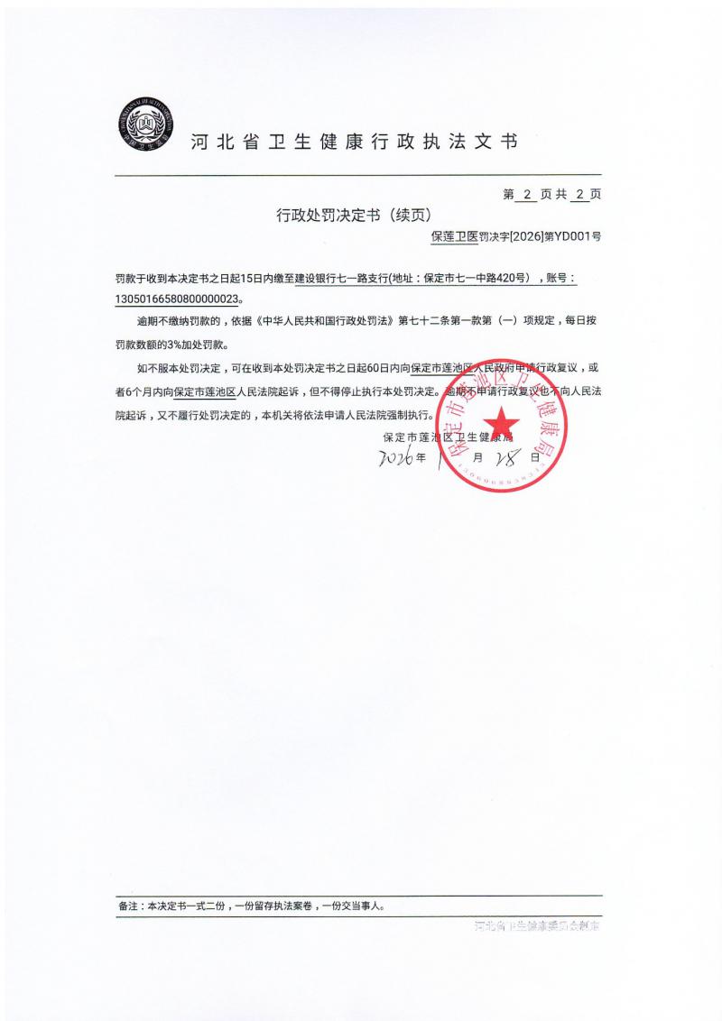 保定市莲池区卫生健康局行政处罚案件公开信息