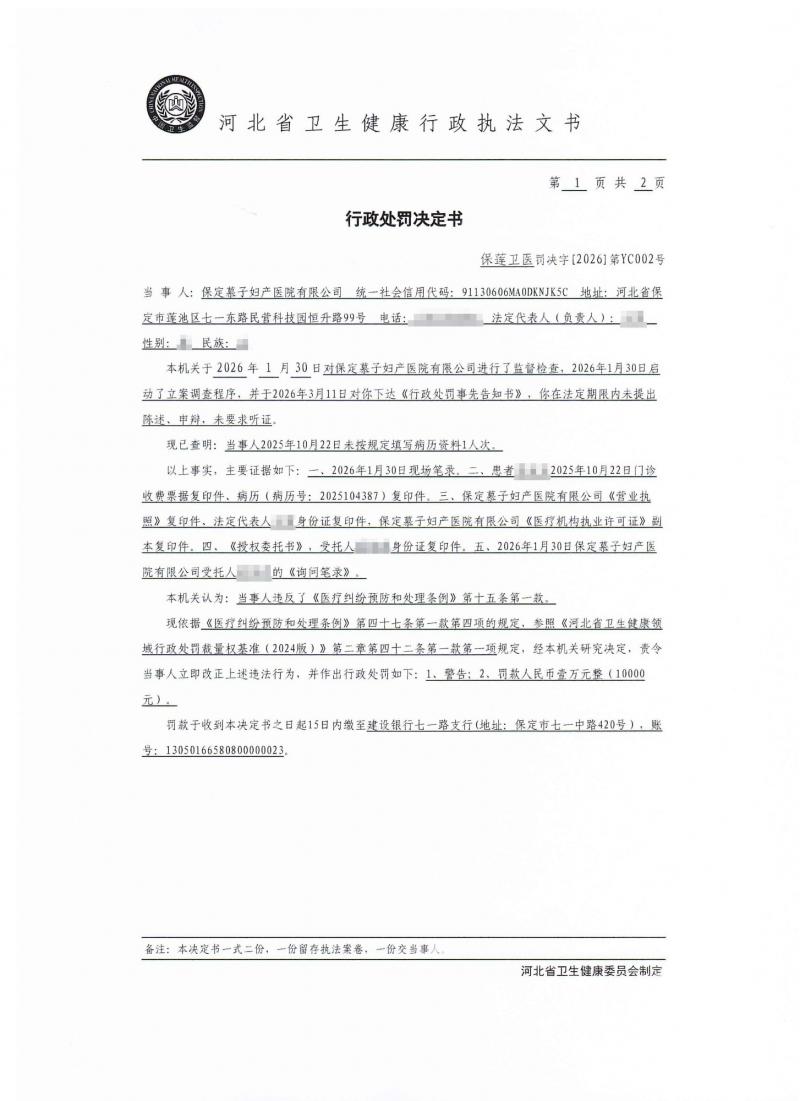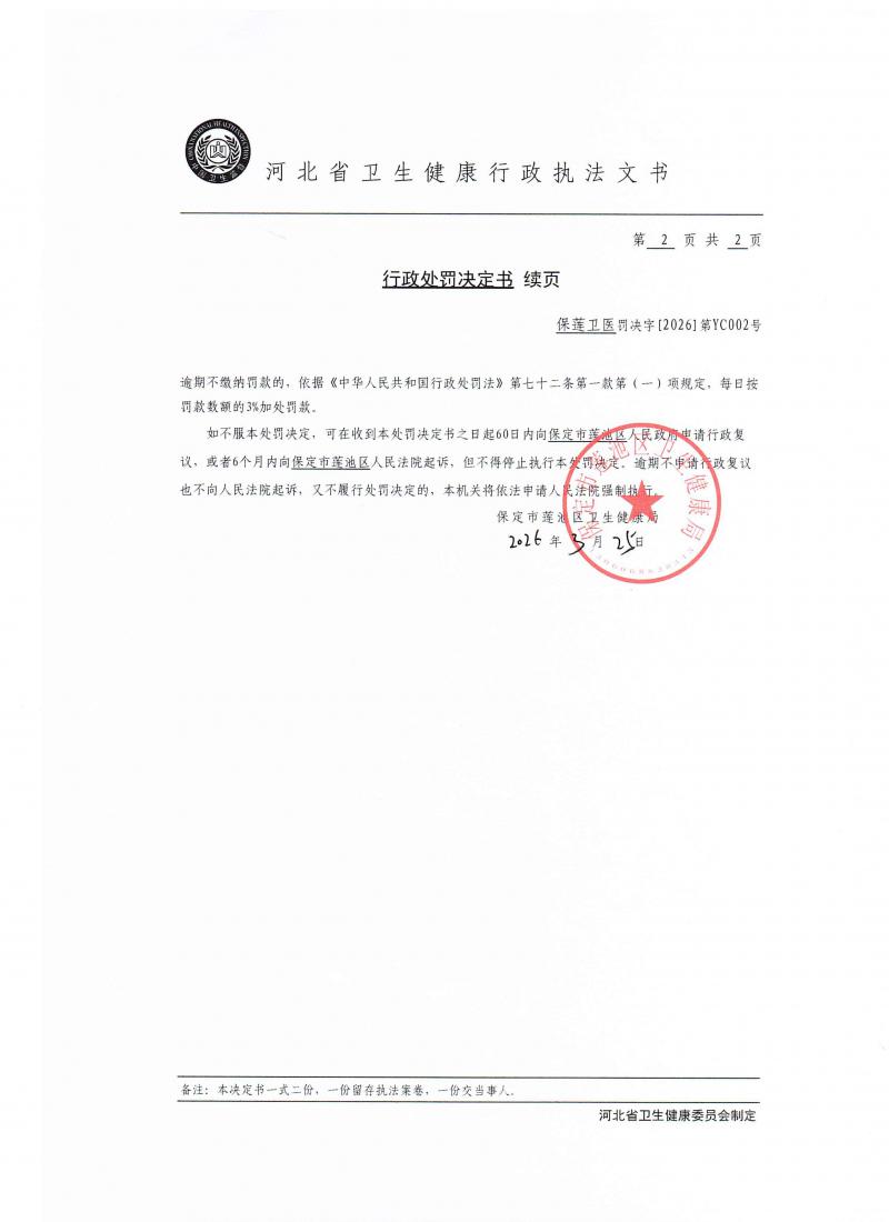 保定市莲池区卫生健康局行政处罚案件公开信息