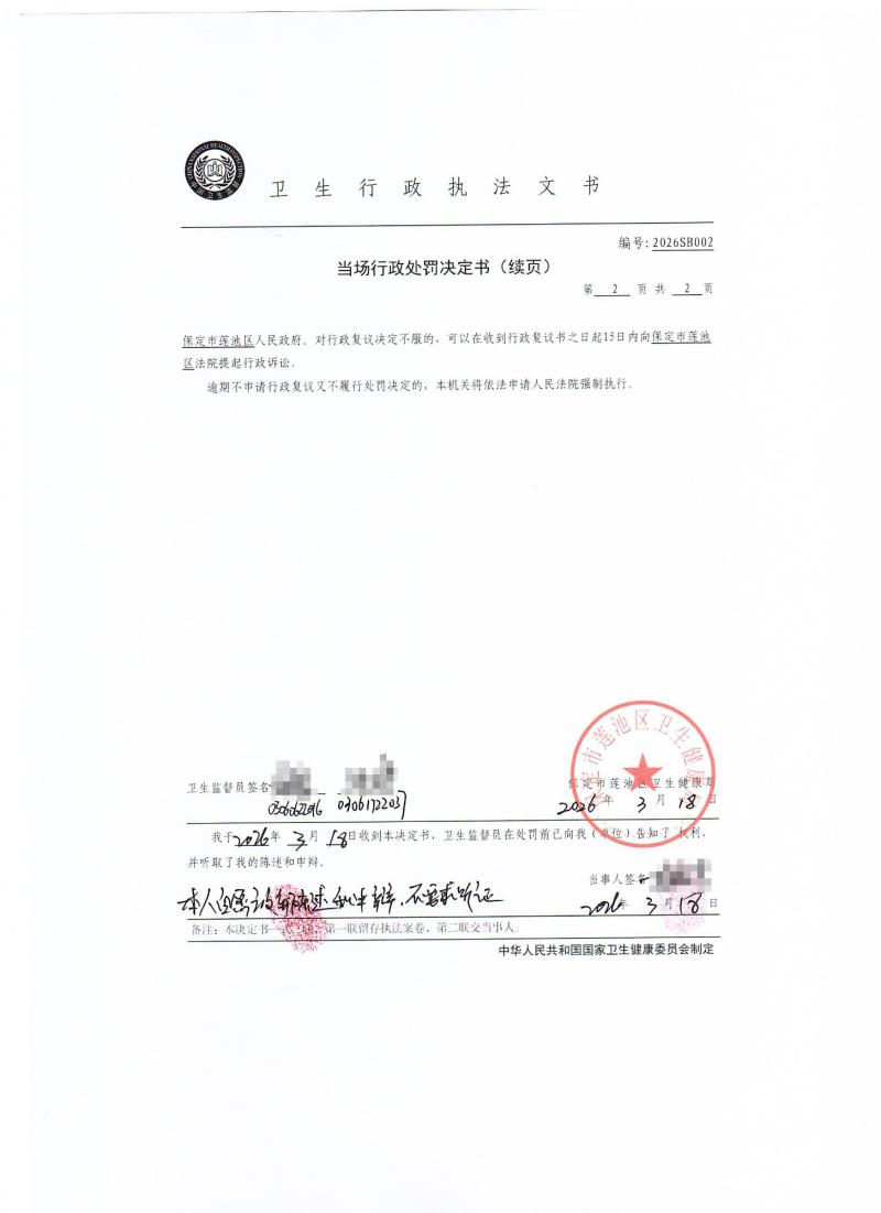 保定市莲池区卫生健康局行政处罚案件公开信息