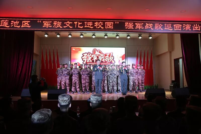 本次活动旨在进一步贯彻落实党的十九大精神,丰富国防教育形式,增强国防教育的感召力,促进军地融合、校地融合,抓好全民国防教育,推动军旅文化进校园活动的开展,不断培树广大青少年和儿童的爱国精神和国防观念。 图为了解职教中心国防预备队组建情况 与会领导参观了职教中心队部、会议室和装备器材仓库,了解了职教中心国防预备队组建情况;卢少泽同志与罗晓瑞同志共同为职教中心国防预备队队部揭牌。在国防预备队和国防少年班组建大会暨授旗仪式中,张立辉同志为区职教中心国防预备队及辖区内11所初中、4所小学国防少年班授旗。各学校将通过开展仪式典礼、参观见学、邀请授课、主题班会等丰富多彩的活动,让军旅文化和军队的作风走进校园,让学生学习更多的国防知识,学习初步的军事技能,强化学生的组织纪律观念,不断增强广大师生热爱国防、建设国防的自觉意识。仪式结束后进行了精彩的文艺汇演。 图为卢少泽同志与罗晓瑞同志为职教中心国防预备队队部揭牌 图为张立辉同志为国防预备队及各国防少年班授旗 图为“军旅文化进校园”强军战歌巡回演出 莲池区具有悠久的历史文化底蕴和丰厚的科教优势 。一直以来,我区紧紧围绕践行社会主义核心价值观,培养学生核心素养,丰富德育载体,创新德育形式,先后组织开展了家乡文化进校园、戏曲文化进校园、足球进校园、篮球进校园、书法进校园等系列特色活动,其经验做法已在全市乃至全省进行推广。