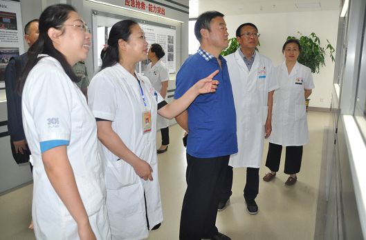刘晓鹏区长首先视察了医院正在进行的莲池区征兵体检工作,对医院良好专业的体检环境和医务人员严谨、认真的工作作风给予了高度认可。 刘晓鹏区长一行又视察了新住院楼、院士工作站、烧伤整形楼等,对新住院楼启用以来的各项工作给予了充分肯定,并对医院未来发展提出了宝贵意见,希望医院以创新的思路推进医疗工作,为广大群众提供更加便捷高效、优质的医疗服务。