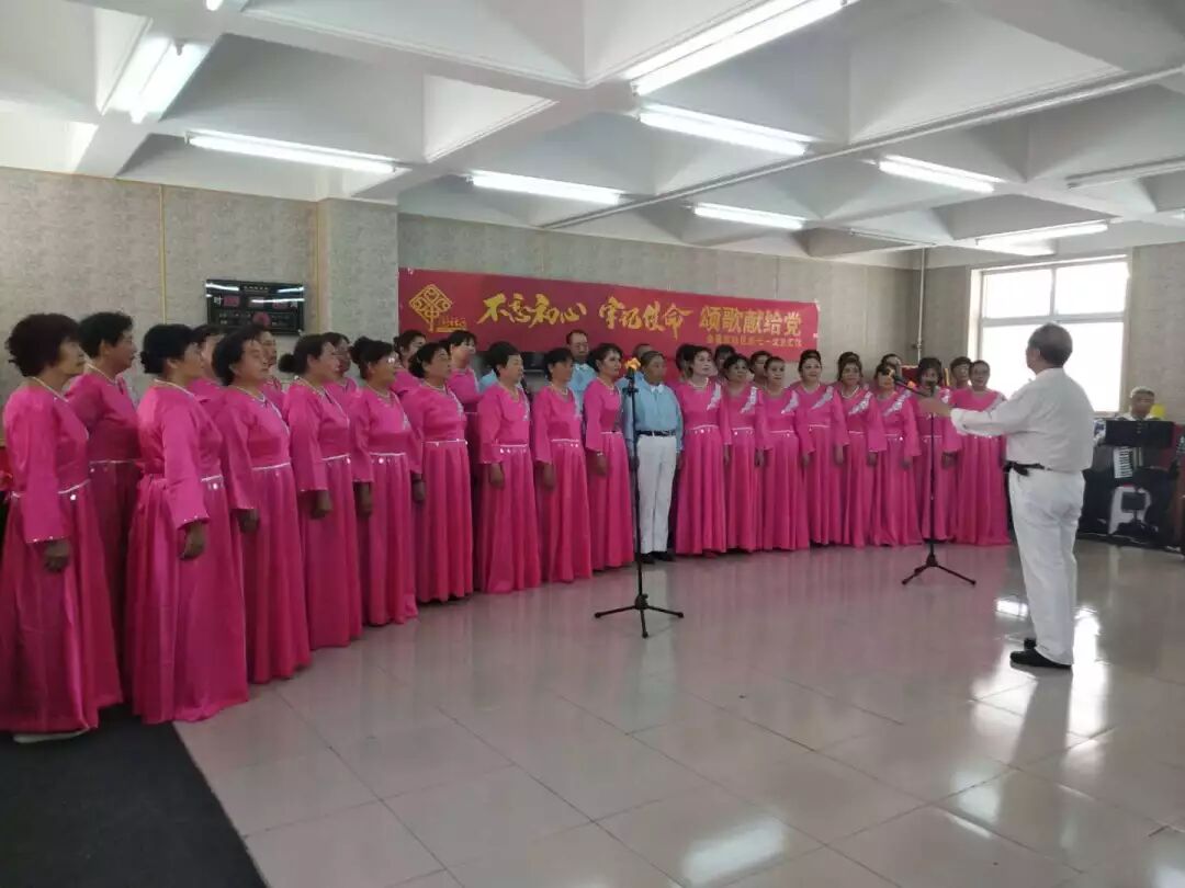 和平里街道金昌东社区 6月30日,和平里街道金昌东社区活动室内,歌声嘹亮、彩旗飘扬,“不忘初心、牢记使命”颂歌献给党迎“七一”文艺汇演拉开帷幕。演出节目形式多样,有合唱、独唱、男女二重唱,有民族舞、现代舞、还有体现红色革命的经典舞台剧。大家怀揣着对党的98岁生日的祝福,用歌声颂党恩,用舞蹈赞美党的丰功伟绩。