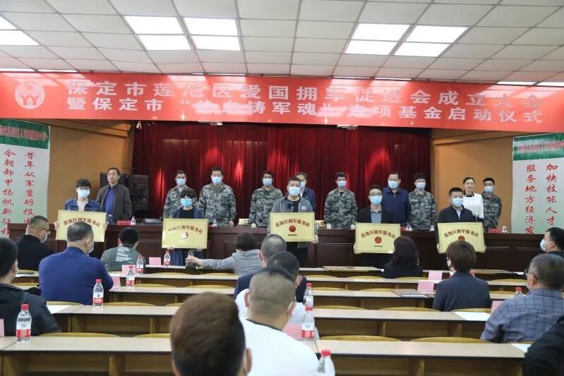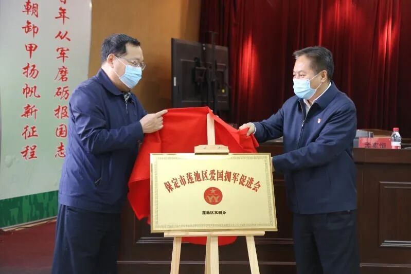 高国华、王勇同志分别代表莲池区委、区政府和保定市退役军人事务局对保定市莲池区爱国拥军促进会成立表示祝贺,崔国青政委作重要讲话,对促进会今后的发展建设提出了指导性意见和具体要求,同时,举行了保定市莲池区爱国拥军促进会揭牌仪式,为50余家会员单位进行授牌,要求加入促进会的企业和商家统一悬挂由保定市莲池区退役军人事务局授予的“莲池区拥军服务站”统一标识。