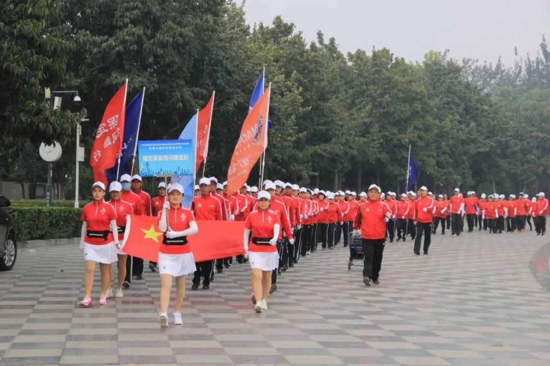 开幕式上,社区腰鼓队欢快的鼓声拉开了本次活动的大幕。保定军校微马健走队为大家做了健步走队列演示。随后,一支支整齐的队伍从出发门走过。队员们喊着嘹亮的口号,迈着矫健的步伐,围绕军校广场进行五公里徒步走。
