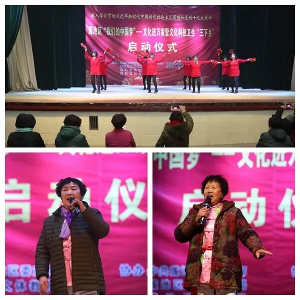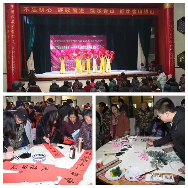 本次活动由区委宣传部、文体教育局、科技局、卫生局主办,区直各成员单位共同组织参与,旨在深入学习贯彻习近平新时代中国特色社会主义思想和党的十九大精神,进一步丰富农村广大群众文化生活,推进社会主义核心价值观落细落小落实,为全面建设经济文化强区、幸福魅力莲池提供强有力的思想保障和文化支撑。 20多位书法家、美术家现场为群众书写春联、创作绘画作品,双手接过散发着墨香的春联、福字,乡亲们脸上洋溢着幸福的笑容;区科技局、科协、司法局、总工会将相关知识宣传册和纪念品分送给村民;区文体教育局还精心组织安排了的文艺演出,歌舞《欢聚一堂》热闹开场,红火的场景、热辣的歌舞,浓浓的节日气氛扑面而来。戏曲《巧县官》、歌曲《万泉河水》、舞蹈《我的祖国》等10余个节目精彩上演,台下村民看得津津有味,掌声阵阵,有的还情不自禁随着旋律舞动、哼唱起来。 本次“三下乡”活动还将在焦庄乡西韩蒋村、东金庄乡梁庄村相继开展。