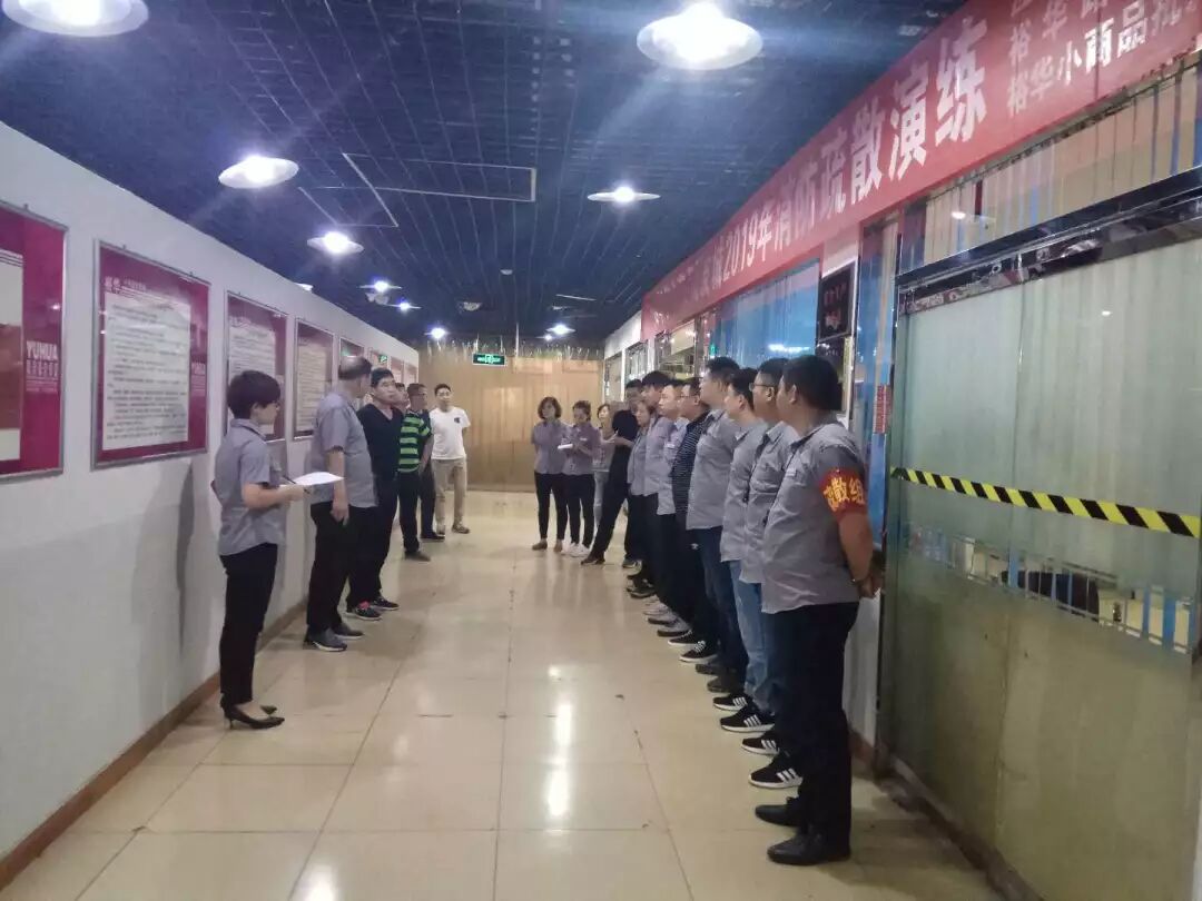 此次演练摸拟夏季用电过量导致用电线路破损引发商场突发火灾。演练开始后,起火点附近营业员就近取用灭火器材扑救,并启动报警器报警,同时拨打119报警电话,并迅速组织商场灭火组前往起火点展开扑救。 接到报警后,商场指挥所立即发布广播命令,全体商户紧急疏散,同时切断电源。就近消防官兵赶到后,立即展开扑救工作。演练结束后,各参演人员集合进行汇总。此次演练共出动消防官兵10余人,商场参演人员600余人。通过此次演练,增强了裕华小商品批发城全体人员的应急处理能力和自救、互救及群防意识的能力,同时也提高了办事处的应急指挥水平。