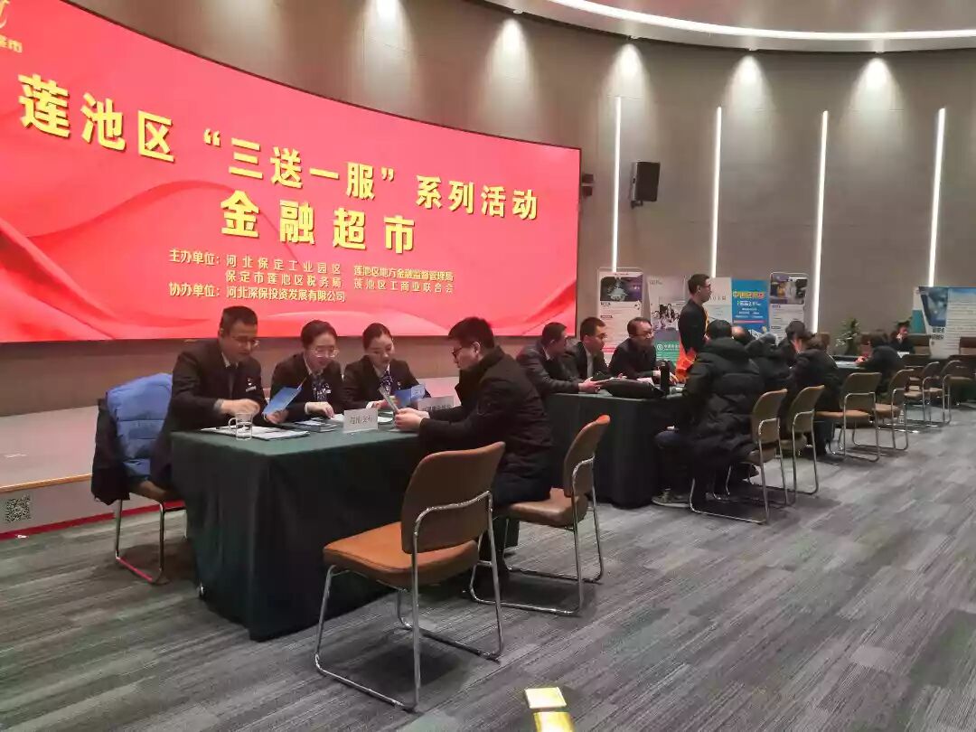 1月3日,莲池区在保定深保园开展“三送一服”系列活动——金融超市,此次活动由保定工业园区、区地方金融监管局、区税务局、区工商联主办,河北深保投资公司协办。