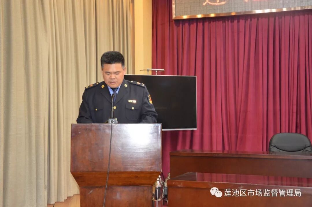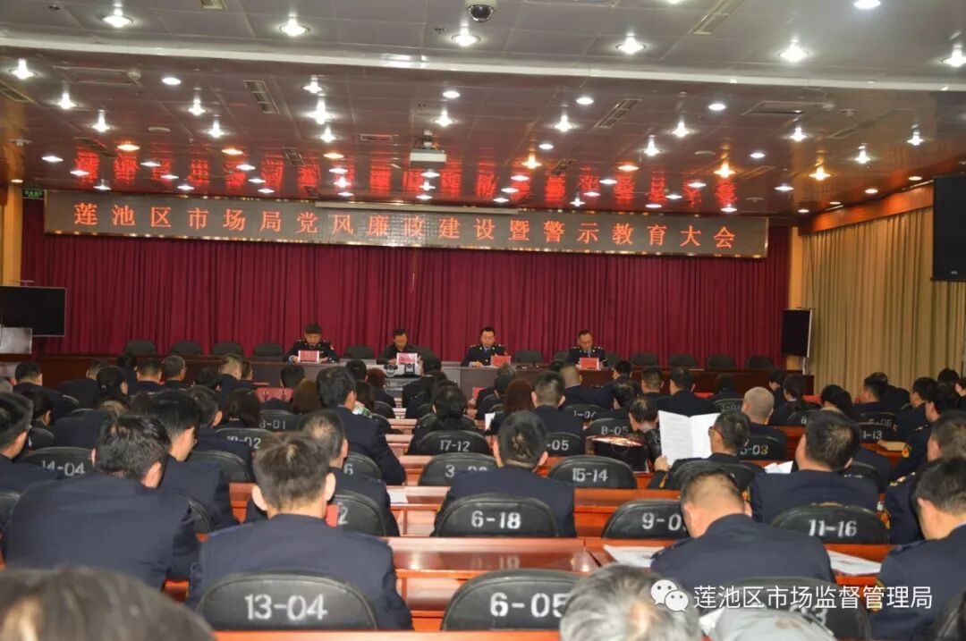 3月26日下午,莲池区市场监督管理局在区政府会议厅召开了党风廉政建设工作暨警示教育大会。主管副区长魏立新、局领导、全局干部职工共270多人参加了会议。会上组织观看了警示教育宣传片,学习了失职失责的典型案例,市场所、机关科室和执法单位的三位代表围绕加强党风廉政建设作了表态发言,局领导作了动员部署,区领导作了重要讲话。