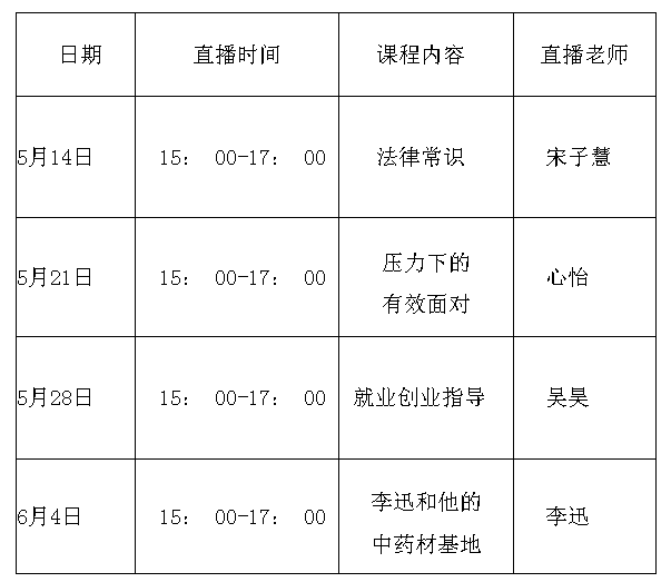 广大退役军人: 为贯彻落实党中央、国务院和省委、省政府关于稳就业的决策部署,统筹推进疫情防控和退役军人教育培训工作,省厅在河北省退役军人培训就业中心网站开设了“云课堂”,欢迎我区的广大退役军人踊跃报名参加,现就有关事宜通知如下。 —、主要内容 退役军人网络“云课堂”主要包括线上免费培训和名师直播授课两部分内容。一方面,河北省退役军人培训就业中心网站所有公开课已向退役军人免费开放,并专设了“适应性培训”和“农业技能培训”栏目。另一方面,聘请专家教授和退役军人就业创业典型,围绕法律常识、心理调适和就业创业辅导等主题,以直播形式进行授课,与学员互动答疑。 二、学习方法 退役军人可随时登录河北省退役军人培训就业中心网站(网址:WWW.hbjp.org.cn),利用线上免费培训资源开展自主学习。直播授课于每周四下午15:00-17:00开展,退役军人可通过下载腾讯课堂APP收看(可签到、提问、讨论和课程回放),也可使用微信扫码直接收看。 三、有关要求 严肃直播授课课堂纪律,广大退役军人要尊重讲师,文明交流,严禁在直播授课平台传播违法违规信息。 附件: 1、河北省退役军人网络“云课堂”直播授课二维码 2、河北省退役军人网络“云课堂”直播计划